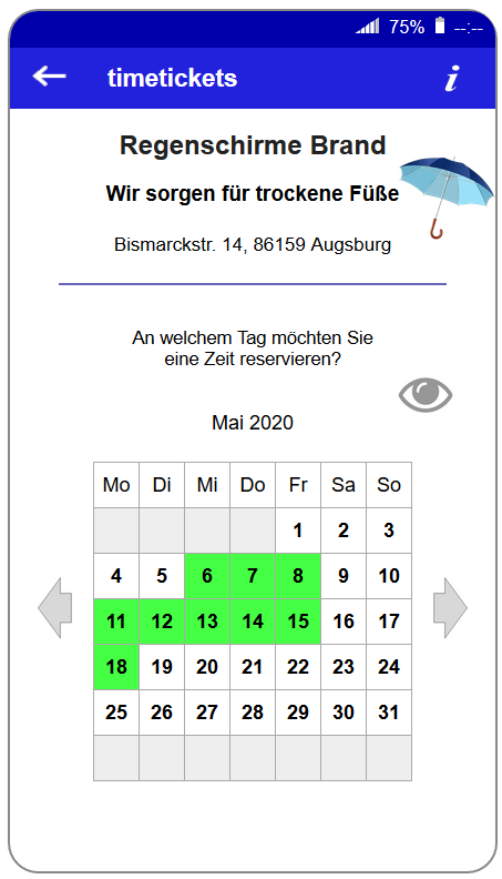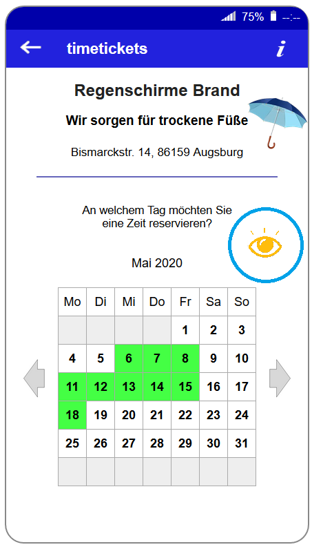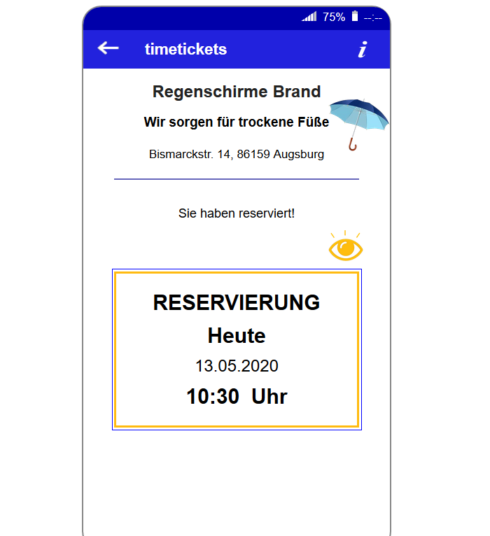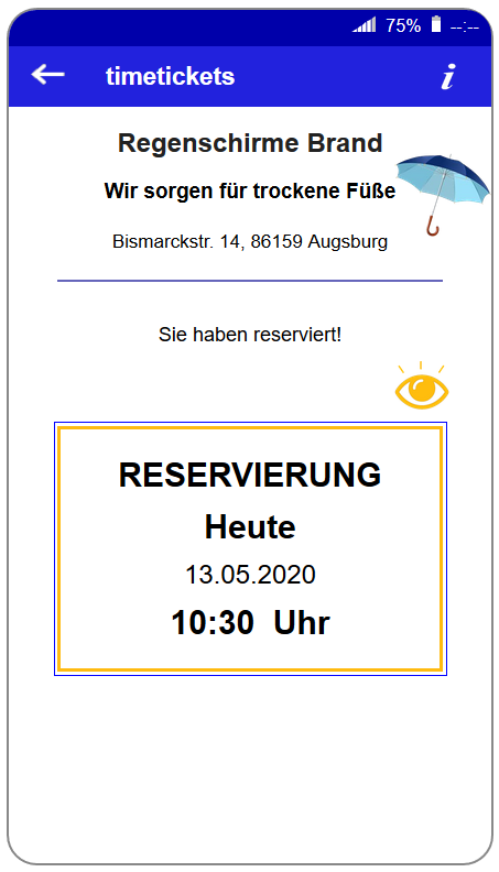| Am Eingang zeigen sie ihre App mit ihrer Reservierungszeit vor. | |