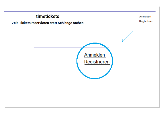 Nach dem Anklicken des Links können Sie sich bei timetickets oben rechts anmelden.